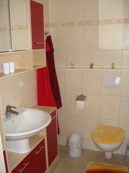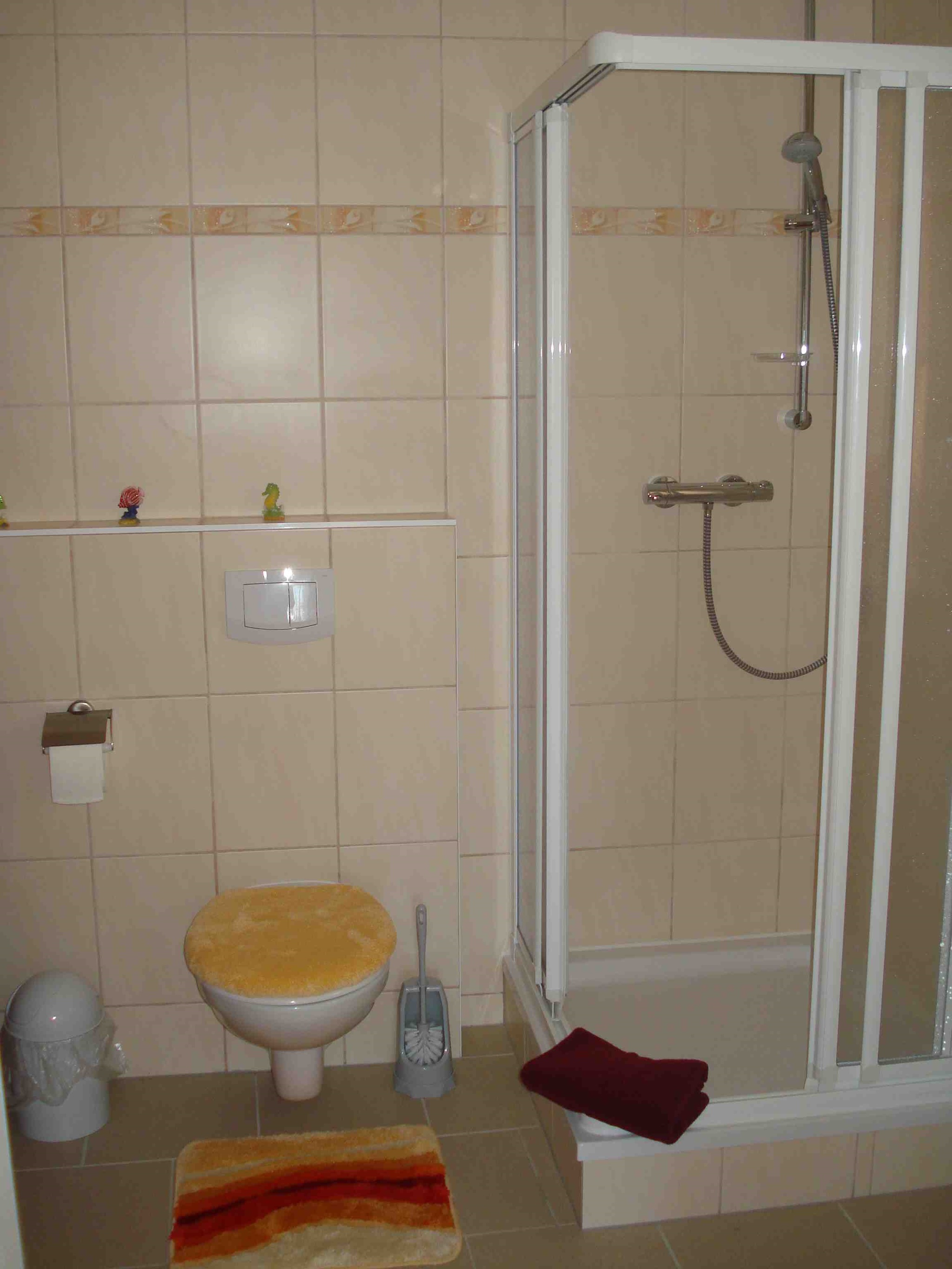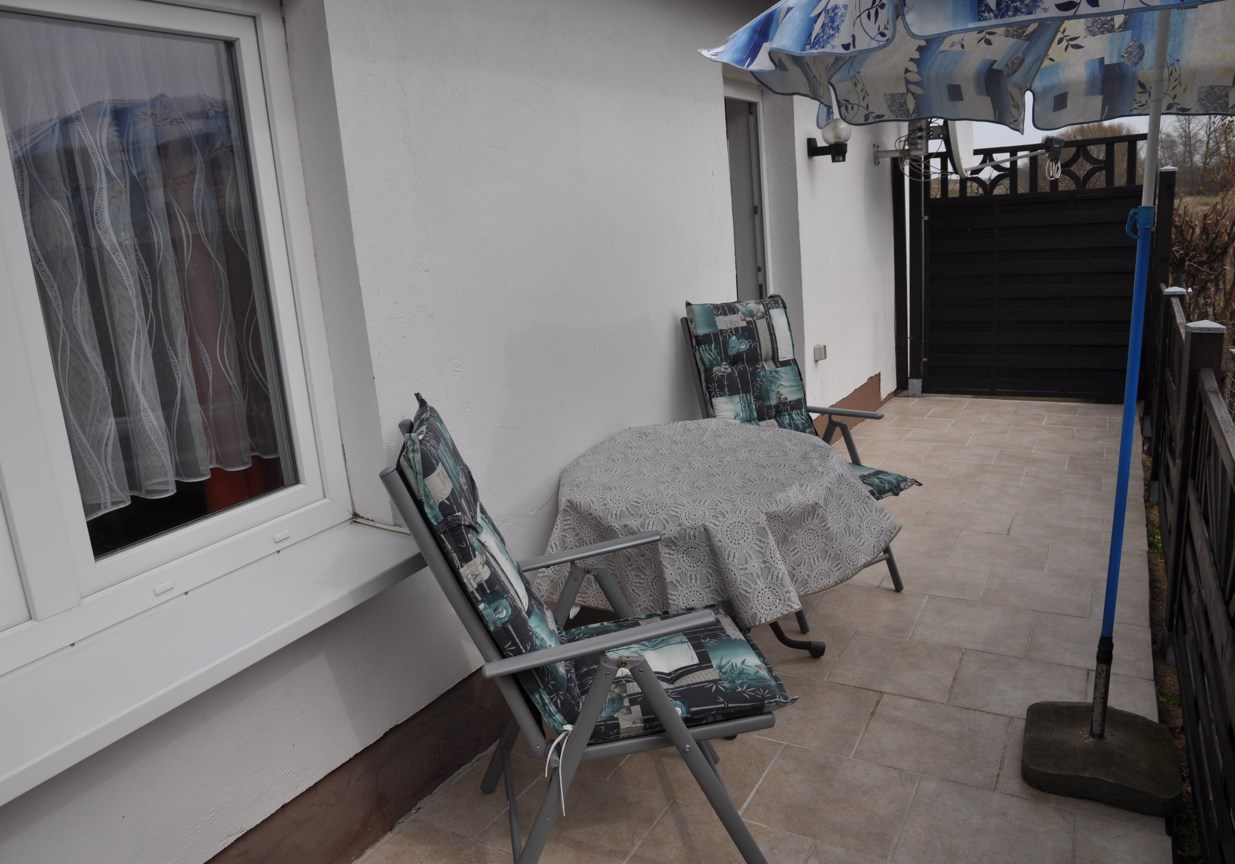 WC / Dusche, Terrasse mit Gartenmöbel.
